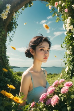A girl composed of flowers, creativity, surrealism, art,