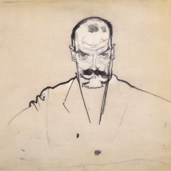 1boy, male focus, solo, traditional media, monochrome, facial hair, mustache, bald, sketch, formal, suit,<lora:aki:1.6>,