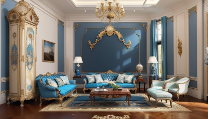 1room, Huali, Europeroom, statue, couch, no humans, indoors, clock, chair, pillow, scenery, table, painting \(object\), carpet, wooden floor, vase, cushion,<lora:SD1.5_Europeroom1.28:0.7>