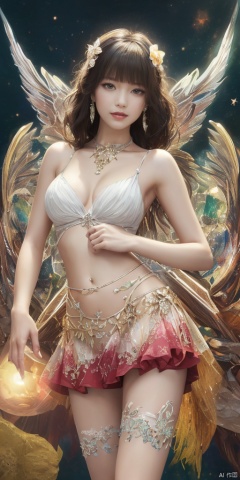 (1girl:1.2),Chinese girls,stars in the eyes,Wedge Sandals for Women Comfortable Strappy Platform Sandals Casual Summer Shoes(Short skirt:1.4),(1girl:1.3),Masterpiece, high quality, 1girl, extreme detailed, (fractal art:1.3), colorful, highest detailed, (chiffon, body painting:1.2), 8k, digital art, macro photo, quantum dots, sharp focus, dark shot, cinematic, Microworld, thigh, (upper thighs shot:1.2), front view,(pure girl:1.1),(white dress:1.1),(full body:0.6),There are many scattered luminous petals,bubble,contour deepening,(white_background:1.1),cinematic angle,,underwater,adhesion,green long upper shan, 21yo girl,jewelry, earrings,lips, makeup, portrait, eyeshadow, realistic, nose,{{best quality}}, {{masterpiece}}, {{ultra-detailed}}, {illustration}, {detailed light}, {an extremely delicate and beautiful}, a girl, {beautiful detailed eyes}, stars in the eyes, messy floating hair, colored inner hair, Starry sky adorns hair, depth of field, large breasts,cleavage,blurry, no humans, traditional media, gem, crystal, still life, Dance,movements, All the Colours of the Rainbow,halo,cable,realistic,smile,nail polish,lips,bow,zj,