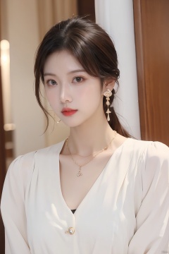 Ultra high quality, looking at you, a girl with gorgeous clothing, earrings, necklace