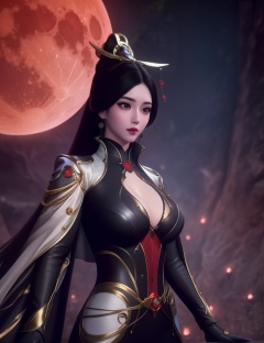 <lora:510-DA-万古狂帝-秋清儿:0.8>(,1girl, ,best quality, ),looking at viewer,  ,,ultra detailed background,ultra detailed background,ultra realistic 8k cg,, ,masterpiece, (( , )),, ,science fiction,mole, ,    ,red moon, black rose,     (cleavage), (),