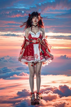 best quality,masterpiece,1girl, above clouds, sky, outdoors, cloud, day, cloudy sky, blue sky, sparkle cosplay, solo, long hair, breasts, looking at viewer, cleavage, standing, full body, japanese clothes,floating<lora:CloudPhotography_v1_wd14:0.7> <lora:SparkleCosplay_v1_wd14-000015:0.7>