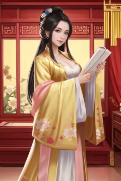 1girl,black hair,breasts,brown eyes,chinese clothes,cleavage,floral print,full body,hair ornament,hanfu,long hair,looking at viewer,simple background,smile,solo,standing,white background,wide sleeves,,<lora:40c3a812a3f04a662d4a38da6d088d0a50617692efa9bc1cad0231fda213ea36:0.6>