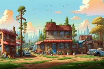 ((HRD, HUD, 8K)),((masterpiece, best quality)), highly detailed, soft light,GameScenes, tree, scenery, motor vehicle, no humans, ground vehicle, outdoors, car, building, sky, cloud, sign, bird, road, city, window, grass, cityscape, plant, <lora:20240330-1711769468704:0.9>