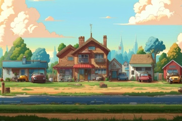 ((HRD, HUD, 8K)),((masterpiece, best quality)), highly detailed, soft light,GameScenes, no humans, outdoors, cloud, scenery, sky, building, tree, day, blue sky, road, window, house, car, motor vehicle, cloudy sky, grass, ground vehicle, city, <lora:20240330-1711769468704:0.9>