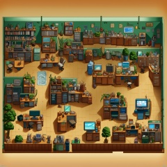 ((HRD, HUD, 8K)),((masterpiece, best quality)), highly detailed, soft light,GameScenes, plant, no humans, scenery, trash can, potted plant, mouse (computer), chair, box, computer, shelf, keyboard (computer), monitor, bottle, refrigerator, indoors, kitchen, cup, table, tiles, flower pot, television, <lora:20240330-1711769468704:0.9>