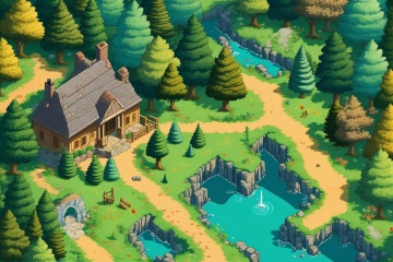 ((HRD, HUD, 8K)),((masterpiece, best quality)), highly detailed, soft light,GameScenes, tree, water, house, stairs, no humans, scenery, grass, nature, river, forest, bridge, door, outdoors, pond, waterfall, bush, building, flower, rock, <lora:20240330-1711769468704:0.9>