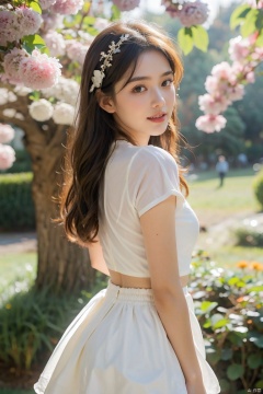1girl breathtaking 8k, masterpiece, perfect beautiful chinese girl, upper body, vibrant, vivid, (short skirt), petticoat, (flowers), chiffon, sheer, light smile, bloom, award-winning, professional, Among colorful flowers garden, houtufeng, sboe,