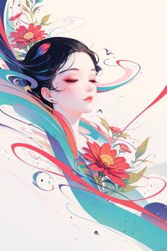 1girl, solo,black hair,closed mouth,closed eyes,flower,eyelashes, makeup,