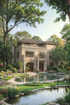 water,pond,river,tree,bush,cityscape,potted plant,flower,forest,fountain,nature,road