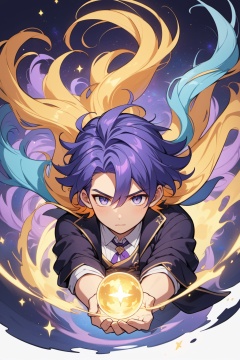 male focus,messy floating hair,colored inner hair,magic,, masterpiece,best quality,very aesthetic,absurdres,