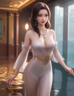 <lora:513-DA-穿越火线-云悠悠:0.8>(,1girl, ,best quality, ),looking at viewer,  ,ultra detailed background,ultra detailed background,ultra realistic 8k cg,, ,masterpiece,((((1girl, solo,  , solo focus, ,walking on liquid, ))))    (cleavage), (), ,ultra realistic 8k cg,   clean, masterpiece,     cinematic lighting, cinematic bloom, , (( , )),,  , unreal, science fiction, luxury, jewelry, diamond, gold, pearl, gem, sapphire, ruby, emerald, intricate detail, delicate pattern, charming, alluring, seductive, erotic, enchanting, hair ornament, necklace, earrings, bracelet, armlet,see-through sleeves, ,