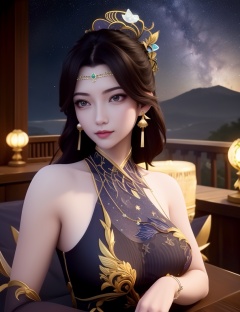 <lora:514-DA-万古狂帝-柳妃:0.8>(,1girl, ,best quality, ),looking at viewer,masterpiece(,1girl,night, starry sky, milky way,outdoors, full moon,  night sky, darkness,  world of darkness, , ) ,ultra realistic 8k cg,   clean, masterpiece,     (( , )),, , , prestige, luxury, jewelry, diamond, gold, pearl, gem, sapphire, ruby, emerald, intricate detail, delicate pattern, charming, alluring, seductive, erotic, enchanting, hair ornament, necklace, earrings, bracelet, armlet,halo((, )), (),