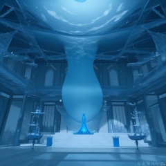Mathematical Design art, stunning visual feast, Visual art architecture, master works, Mysterious sea creatures, mathematical design art, stunning visual feast, visual art architecture, master works, bedroom with Marine style, smooth furniture, tsunami waves and spiritual blue wave fairy fish, slender body, like a dancing fairy. Its scales twinkle with a soft light, like a bright pearl in the blue waves, emitting intoxicating spiritual beauty. Emerging from a sea of blue, 3D rendered, highly detailed, and naturally lit