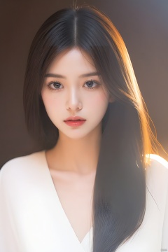 Best quality, masterpiece, ultra high res, (photorealistic:1.2), a girl,Depth of field, golden hour, (rim lighting:1.1), soft shadows, vibrant colors, hazy glow, painterly effect, dreamy atmosphere,A clear face,Black hair, long hair, straight hair, white clothes,Perfect facial features,Amazing beauty,