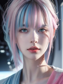 watercolor painting,<(masterpiece, realistic:1.3), (extremely intricate:1.2)>,portrait of a girl,sliver gradient hair,(sliver hair:1.1),(light blue hair:1.1),(pink hair:1.2),medium_shot,solo,long hair,Science fiction style,futurism,space exploration,mechanical elements,interplay of light and shadow,cool tones,futuristic technology,a sense of otherness,mysterious atmosphere,visual impact,artistic innovation,thought-provoking,Best quality,masterpiece,ultra high res,(photorealistic:1.4),