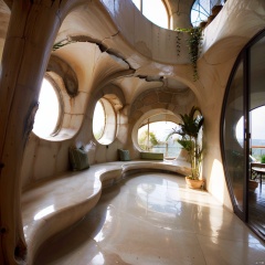 Organic architecture,day,no humans,palm tree,plant,potted plant,scenery,traditional media,tree,vines,window