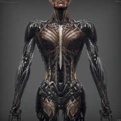 A bionic robot, human-like, exoskeleton, transparent, grey background,, no human, robot, mecha, science fiction, realistic, non-human robot