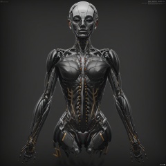 A robot, minimalist styling, industrial design, human-like, exoskeleton, transparent, grey background,, inhuman, robot, mecha, science fiction, realistic, non-human robots