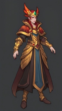A gender fluid looks mysterious and flamboyant. They wore a cloak made of red and gold flame patterns, which seemed to burn with inner passion and strength. Phoenix's head wears a flame-shaped headdress, as if it were a crown-like decoration, symbolizing their desire to rule and leadership. Always with a confident and decisive smile on their faces and a determined twinkle in their eyes, they bring gender diversity and flame-like unique charm to the game, in stark contrast to traditional characters, adding a new perspective and experience to the game