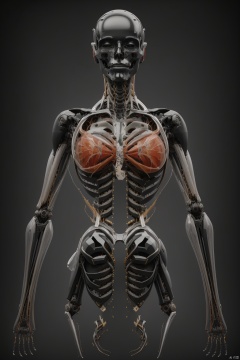 White robot ,Front view of the robot,White background, english text, no humans, watermark, robot, mecha, science fiction, realistic, skeleton, non-humanoid robot, spine,Ribs, ulna, sternum, scapula, clavicle, mandible,Bionic muscle. Transparent skin. Transparent muscle.