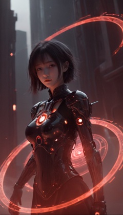 1girl,<lora:xl-shanbailing-0116magic array:0.85>,magic circle,magic array,magic circles,magic array,mecha,black,dark style,ultra wide,octane render masterpiece,beautiful depth of field,ultra wide field,ultra detailed CG perspective,ultra dynamic lighting amazing shadows,cityscape,tattoo,space,cool special effects,fluorescence,darkred,