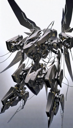 <lora:xl-shanbailing-24-0406machine robo:0.8>,future technologies,bailing_robot,robot,robotics,machine_robo,A metal robot with delicate mechanical patterns,gradient,Partial texture of a metal robot,gradient background,grey background,Technological Fantasy,monochrome,solo,weapon,greyscale,no humans,simple background,1girl,Matte Metal,wings,wire,