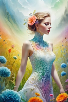 illustration, watercolor style of a litter girl wearing gauze, pure white skin, exposed body, shape, close-up, floral background, fashion, minimalism, extremely detailed, absurd, (color), abstract background, fractal, (flower) exquisite visual effects, outdoor, grassland, fog, exquisite visual effects, super bright, colorful background, high-definition, artistic calligraphy and ink, abstract, colorful colors, beauty, color clarity, mystery, oil painting, soft colors, art, amazing depth, super details, masterpieces of engineering leaders, strategic planning, rich and colorful, peaceful visual effects, art's super details, texture and best quality, masterpieces, super details, perfect composition, best image Quality, super-resolution, surrealism, dreamlike realism, dreamlike creation, terrifying color schemes, surrealism, abstraction, psychedelic, (8k, RAW photo, best quality, masterpiece: 1.2), (realistic, photo fidelity: 1.37), 4k texture, HDR, complex, highly detailed, clear focus, soothing tones, maze details, crazy details, complex details, HDR