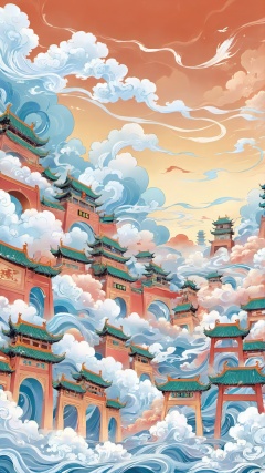 In the fantasy world of Kuo Chao, lines are like flowing clouds, shuttling between buildings and characters. The detailed lines on the Chinese clothing are like floating clouds, dancing with the wind, outlining the elegant posture. The lines of the buildings on both sides of the street are graceful and smooth, as if they were cloud buildings in fairyland, twists and turns, as light as clouds