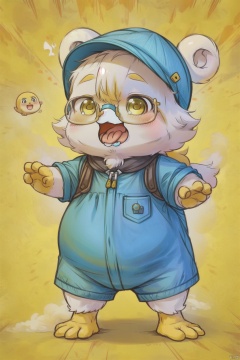 Chick, chubby, fluffy, cute, yellow, big belly, glasses, funny expressions, screaming, exaggerated action, fluffy, cartoon style