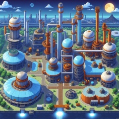 Future Industrial zone, a vibrant one with all kinds of magical plants glowing in the moonlight, with a modern industrial park in the background. , Illustrated, 3d, Cartoon, High resolution, High quality, Detailed, Masterpiece, hdr, Sharp, [Pixel art style], [Abebe style], amazing, beautiful, amazing, brilliant, incredible,