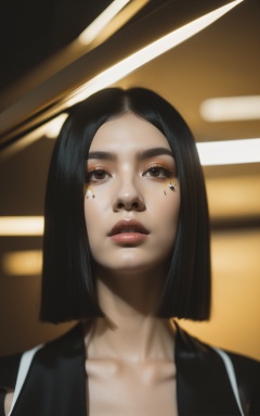 reeds and fauna,tall Bauhaus Medina with Neoprene skin,Long bob hairstyle,deep focus,Grim,Bugcore,Light caustics,F/14,lots of details,