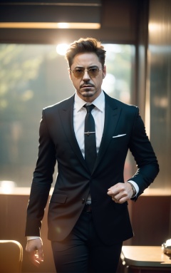 Robert Downey Jr.,wearing a suit to attend the meeting,(masterpiece, top quality, best quality, official art, beautiful and aesthetic:1.2),cover art,(photo effect:1.5),,