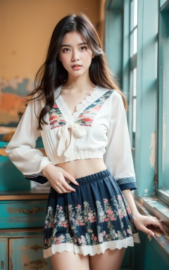 (natural colors, correct white balance, color correction, dehaze,clarity),RAW photo,full sharp,wallpapper 8k uhd,dslr,soft lighting,high quality,(Masterpiece, best picture quality, ),girls,(sailor suit and lace panties and painted chest | patchwork dress :1.2),