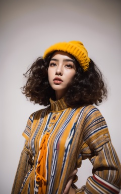 (((masterpiece))) , (((best quality))) , anime style, 2d, 1990'S slender [Rwandan:Bedouin:9] (good-looking 1girl, solo:1.3) , she is surrounded by a couple of Females, in Honey garb tailored by Virgil Abloh with diagonal stripes embroidery, she has Ginger hair, curly hair, key visual
