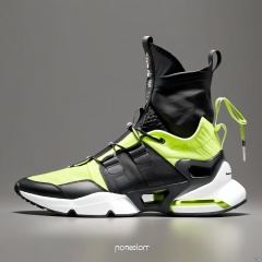 lit. one foot in one shoe,A yellow shoe design, side view,white background, greyscale, shoes,, grey background, no humans, sneakers, still life, conceptual design, masterpieces of art.Mechanical soles, shoe design, product design,product render,cardesign