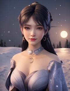 <lora:517-DA-遮天-姬紫月:0.8>(,1girl, ,best quality, ),looking at viewer,masterpiece, (( , )),, realistic,science fiction,mole, ultra realistic 8k cg, ,      ,outdoors, snow, snowing, snow on head, sun,sunset,sunlight,moonlight,full moon, red moon,  crescent moon,  crescent rose,  black rose,       (cleavage), (),