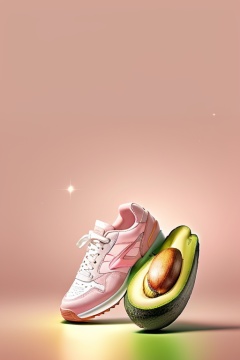 (masterpiece, top quality, best quality, official art, beautiful and aesthetic:1.2),((senior sneakers)),light pink theme,avocado,pick,gradient abstract background,bubble,water drop,advanced poster,star,glowing,