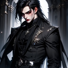 {very detailed light},{painting},{{very fine 8K CG wallpaper}}, (Premium, Best Quality, Art, Beauty and Aesthetics: 1.2),Castle,Vampire,((A boy with ruthless eyes)), cold,solo, kula diamond, red eyes,gloves, belt, lips,gothic,cold attitude