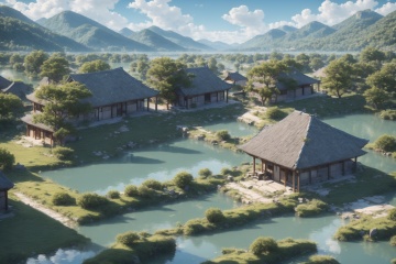 <lora:AgainGuofengStyle:1>,AgainGuofengStyle, blue sky, building, bush, cloud, day, forest, grass, house, lake, landscape, mountain, nature, no humans, outdoors, river, road, scenery, sky, stairs, sunlight, town, tree, village, water, window