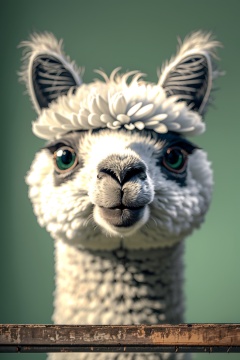 masterpiece,best quality,looking at viewer, solo, peeking out, no humans, simple background, animal, animal focus, reflection, green background, alpaca
