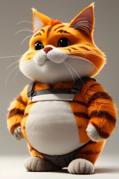 masterpiece,best quality,solo, simple background, full body, white background, standing, grey background, hands on hips, whiskers, no humans, orange fat cat
