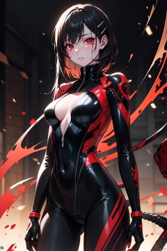 noir, chiaroscuro, ray tracing, cinematic lighting, cowboy shooting, 8K, yes, super detailed, precise, best quality, award winning, award winning, A high resolution, masterpiece, high detail, guweiz on artstation on pixiv, artstation Hot topics on pixiv, Detailed Digital Concept Art, By Yang Jie, 2. 5D CGI Anime Fantasy Artwork, Ultra HD, 8K, Realistic Skin Textures, Chiaroscuro, Ray Tracing, Cinematic Lighting, 8K , Yes, Super Detail, Accurate, Best Quality, Award-Winning, Award-Winning, A High Resolution, Masterpiece, High Detail, In the Snow, Clear, Masterpiece, Best Quality, 8K, Digital, 1st girl, alone, up, hair accessory, red eyes, emotionless expression, blood stained mechanical parts, wires, cables, fail effect, scary, science fiction, futuristic, darker background inside, neon lights, cyberpunk characters, Surreal, strange, disturbing, spine-chilling, scary, western metal, red eyes, black hair, long black gloves, jumpsuit, leggings, highlighting her graceful figure, will The whole body is wrapped, symbiote, ((bulging sexy)), jumpsuit, red eyes, venom possession, black hair, black long gloves, jumpsuit, black one-piece, blood-red eyes , best quality, high resolution, super detailed, vivid textures, mask, bangs, wearing socks, tears, covered with black colored slime