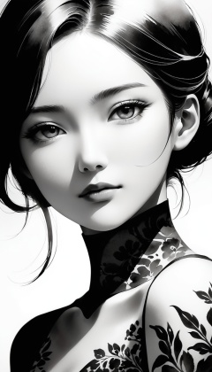 Ink wash painting style,1girl,Elegant,Portrait Photogram,detailed gorgeous face,