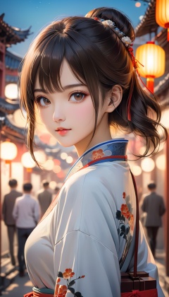 Traditional Chinese painting style,masterpiece,best quality,city,1girl,looking at viewer,bokeh,