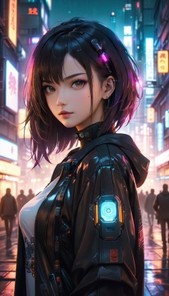 cyberpunk,masterpiece,best quality,city,1girl,looking at viewer,bokeh,