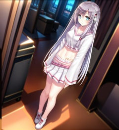 ((masterpiece)),(((best quality))),((extremely detailed)),hdr,1girl,solo,<lora:修手Fixhands_anime_bdsqlsz_V1:0.7>,lucy,<lora:lucy:1>,(midriff:1.1),full body,