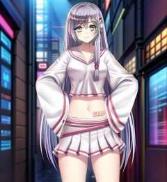 ((masterpiece)),(((best quality))),((extremely detailed)),hdr,1girl,solo,<lora:修手Fixhands_anime_bdsqlsz_V1:0.7>,lucy,<lora:lucy-000010:1>,cyberpunk,full_shot,(midriff:1.1),hands on hips