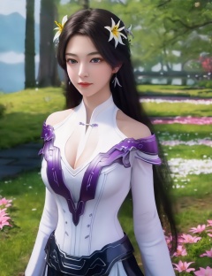 <lora:518-DA-遮天-李小曼:0.8>(,1girl, ,best quality, ),looking at viewer,  ,ultra detailed 8k cg,ultra detailed background,ultra realistic 8k cg,1girl, solo,(bare shoulders:0.85),(masterpiece, best quality),((oil painting style)),sexy young lady,(beautiful face and eyes),(upper body:1.5),(whole body:1.05),(single person:1.2),surrounded by flowers, (lily), roses, floret, vegetation, white, purple, purplish pink,Impressionism,colorful,(Breast size:1.3),(cleavage),